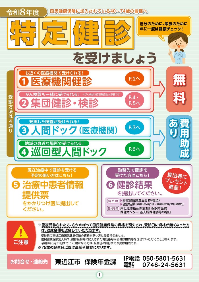 特定健診は、自身の体の状態を知る良い機会ですので、年1回必ず受診してください。