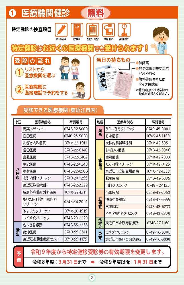 指定医療機関は「令和8年度健康ガイドブック」の6~7ページをご覧ください。医療機関の諸事情により内容が変更になっている場合があります。詳しくは医療機関に確認してください。