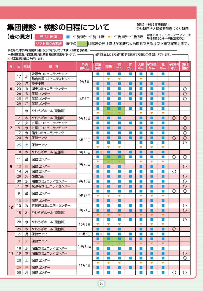- 集団健診・検診 無料 ※がん検診は自己負担金が必要です。