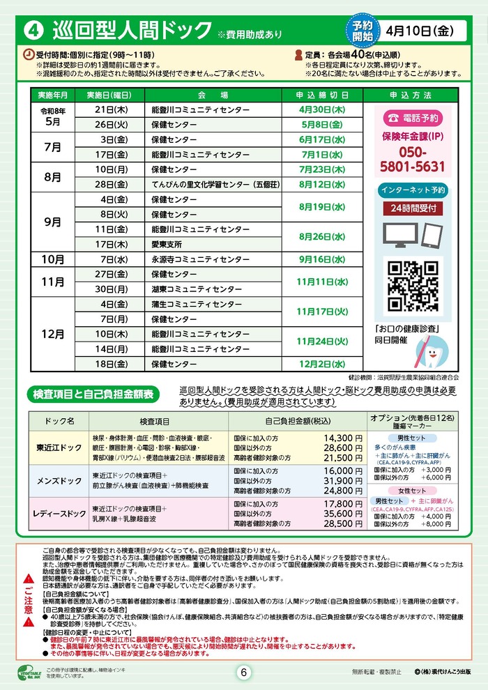 ※巡回型人間ドックを受診する人は人間ドック・脳ドックの費用助成の申請は必要ありません。
