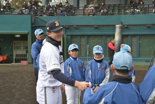 茶野選手は、バッティング練習が終わった小学生にグータッチをして優しく話しかけていました。