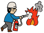 消火器や三角バケツなどの有効な使い方を習得しておきましよう。